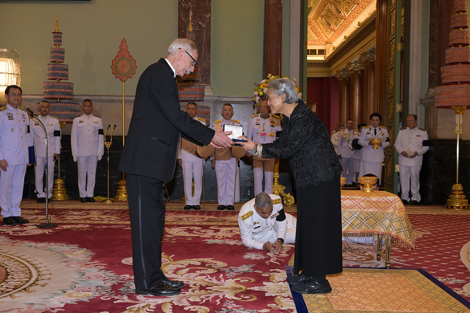 พระบาทสมเด็จพระเจ้าอยู่หัว ทรงพระกรุณาโปรดเกล้าโปรดกระหม่อมให้ สมเด็จพระกนิษฐาธิราชเจ้า กรมสมเด็จพระเทพรัตนราชสุดา เจ้าฟ้ามหาจักรีสิรินธร มหาวชิราลงกรณวรราชภักดี สิริกิจการิณีพีรยพัฒน รัฐสีมาคุณากรปิยชาติ สยามบรมราชกุมารี เสด็จออกแทนพระองค์ ณ พระที่นั่งจักรีมหาปราสาท พระบรมมหาราชวัง พระราชทานพระราชวโรกาสให้ นายแพทย์เทอร์รี ดีน คิง เฝ้าทูลละอองพระบาท รับพระราชทานรางวัลสมเด็จเจ้าฟ้ามหิดล ประจำปี พ.ศ. 2568 วันพุธที่ 28 มกราคม พ.ศ. 2569